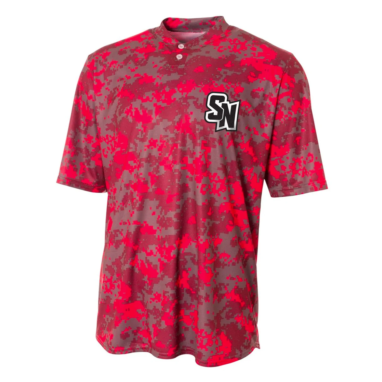 Spy Ninjas LCP Youth Camo Henley Tech Short Sleeve T-Shirt - Red / Grey—